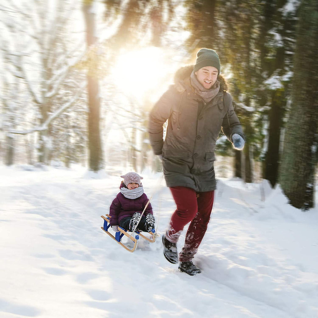 This is a great classic sled. It's made of wood and high-quality plastic so it's very sturdy and you can slides really well across the snow, grass and sand. It takes you back to your childhood, and it's wonderful to be able to make memories with your children. Great for single or multiple rider, sledding with friends! Also you can placed grocery items in it.